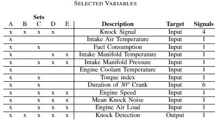 - Experiments were conducted with the same architecture, dataset, and input variables, but with different split process on train/test achieved lower accuracy on experiments with the same amount of the dataset for train/test. It is possible to see at Figure 4 that 1, 2, 3 had 80/20, and 4, 5, 6 had 50/50 with the same characteristics but lower f1-score. The experiments that were conducted not using the knock signals (set E) achieved a maximum accuracy of 12%, so it leads to understanding that it is difficult to detect the engine knock fault without the vibrational signal just analyzing other aspects.