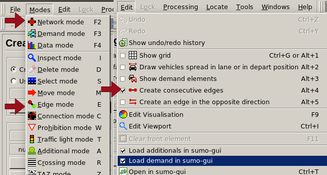 - Select network mode again, then select edge mode, then select edit ->Create consecutive edges.