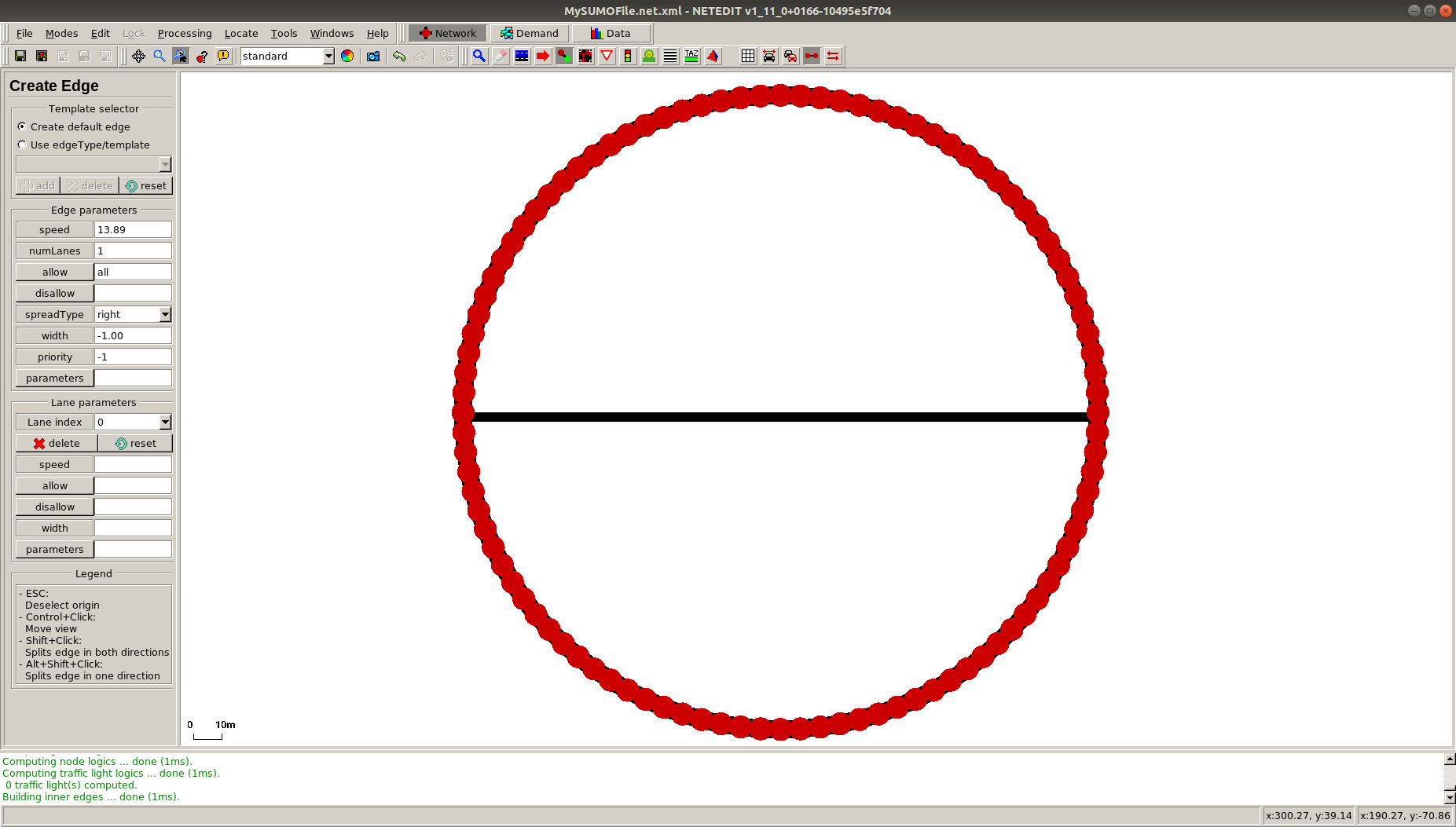 - SUMO represents roads and traffic through graph nodes. When we need to create a roundabout, or a circular road with a specific geometry, the netedit tools can be used to modify and adapt roads.
