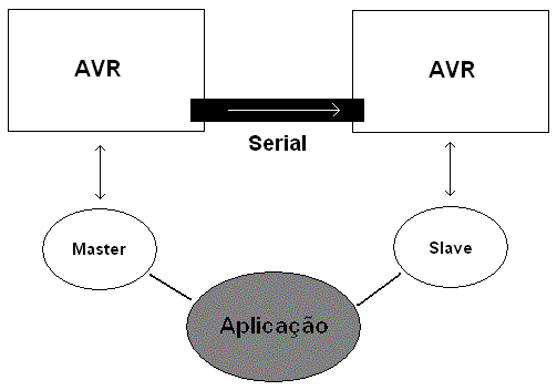 permitem a comunicação serial. No caso, o master emite para o slave, ou seja, a